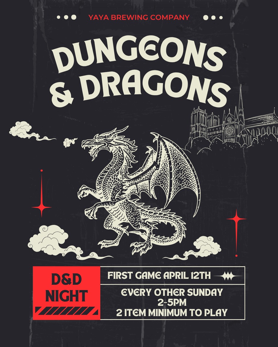Whether you're a seasoned dungeon master or a level 1 adventurer, there's a seat at the table for you! To keep the beer & the mana flowing, we have a 2 item minimum per adventurer. We have beer, wine, seltzer, cider, root beer, hop water, and coffee available. Perfect for beginners or those looking for a short quest. We'll have an experienced DM on hand to guide the way. No signup needed. Just come ready to conquer the quest!YaYa has really upgraded in the three years I've been dropping in and out. Currently they have a Detroit style pizza kitchen that's worth going to even if you don't drink beer. Plus there's a great patio, pinball and Fluffy Puffy Sunshine, so really the place is just a winner. It's been brewing delicious beer for years, but now you toss in the pizza, games and outdoor space and we've got a real winner in the Valley. Trivia night with Bearded Trivia is real fun, so is Bingo.