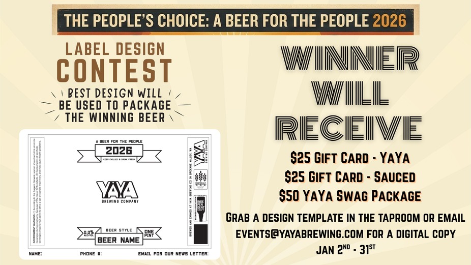 Come by the taproom and grab a design template or email events@yayabrewing.com for a digital copy